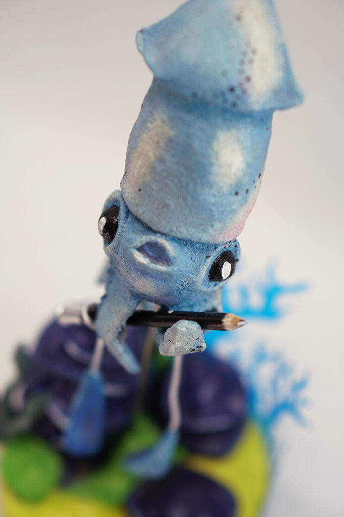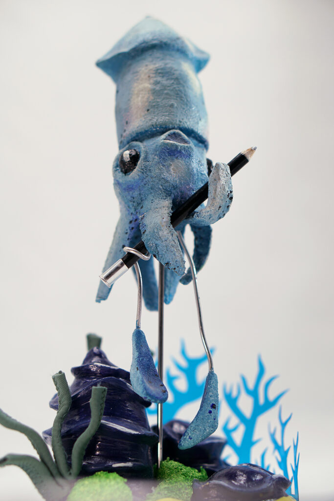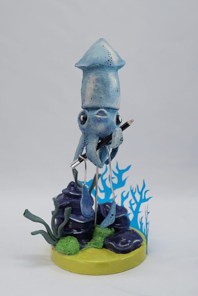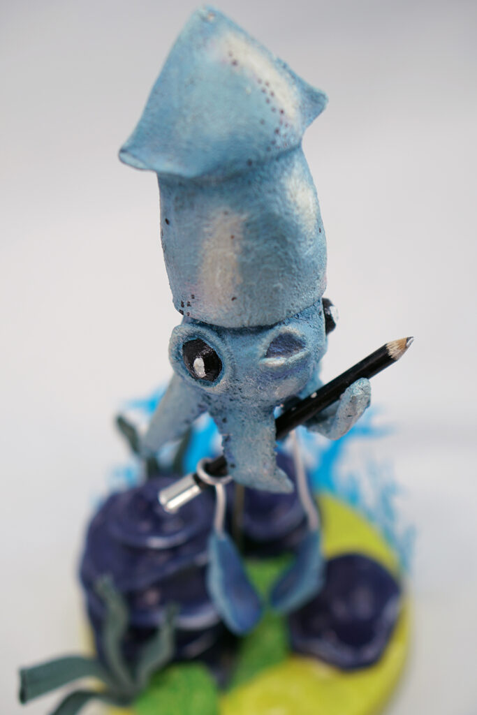 Squilluatrator is a creative creature of the deep, drifting through the ocean with sketchbook in tentacle. As he explores reefs and hidden corners of the sea, inspiration strikes in waves, each new discovery becoming a line, a shape, or an idea.